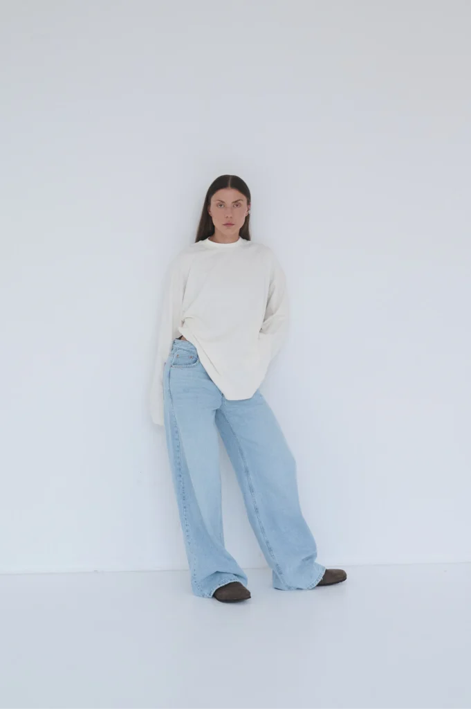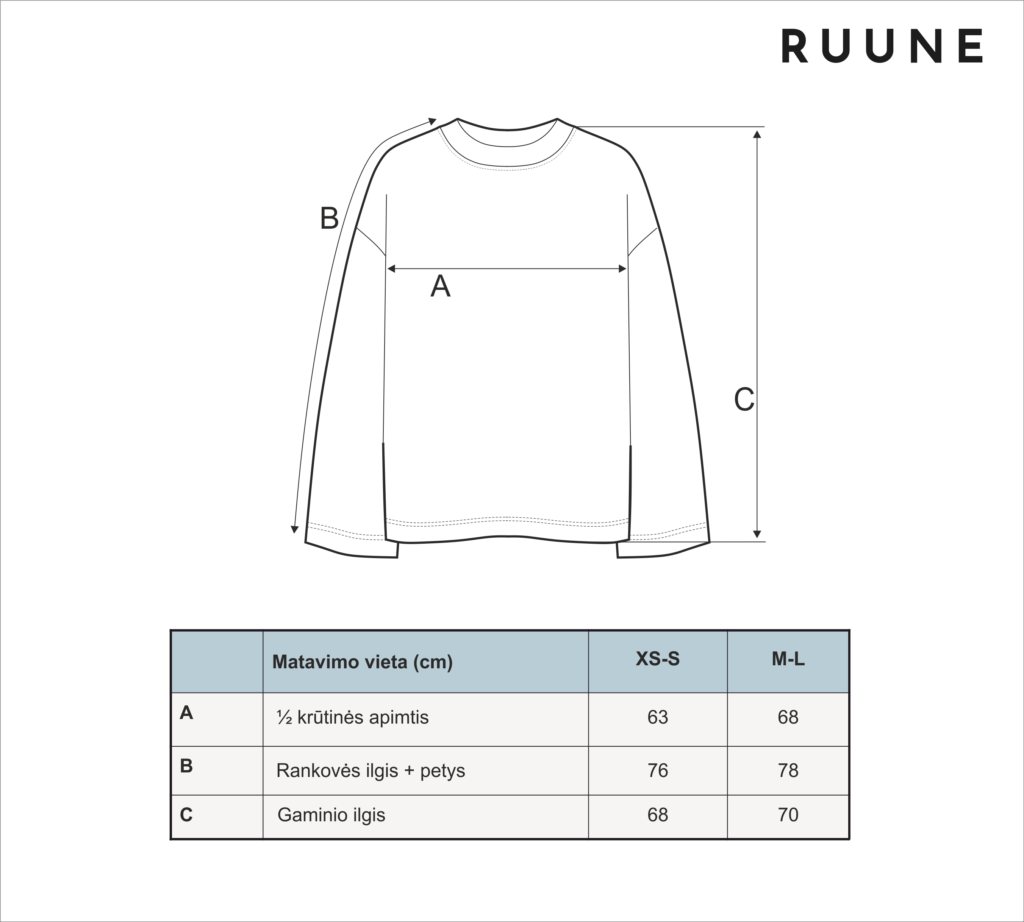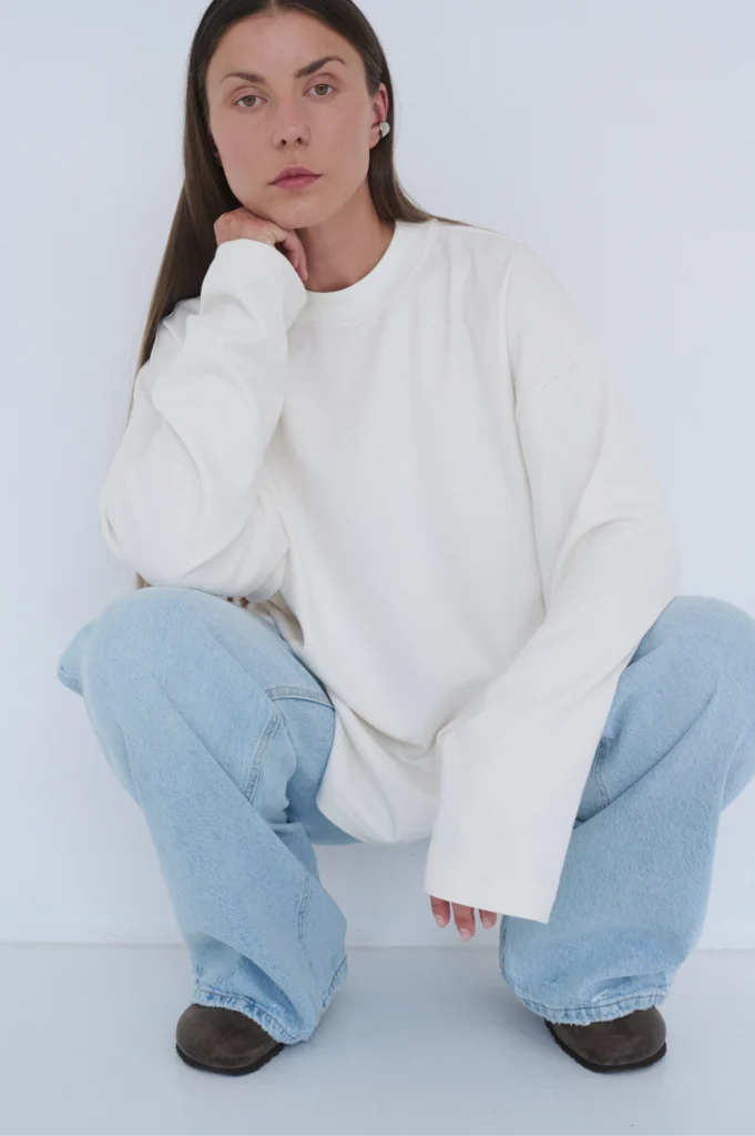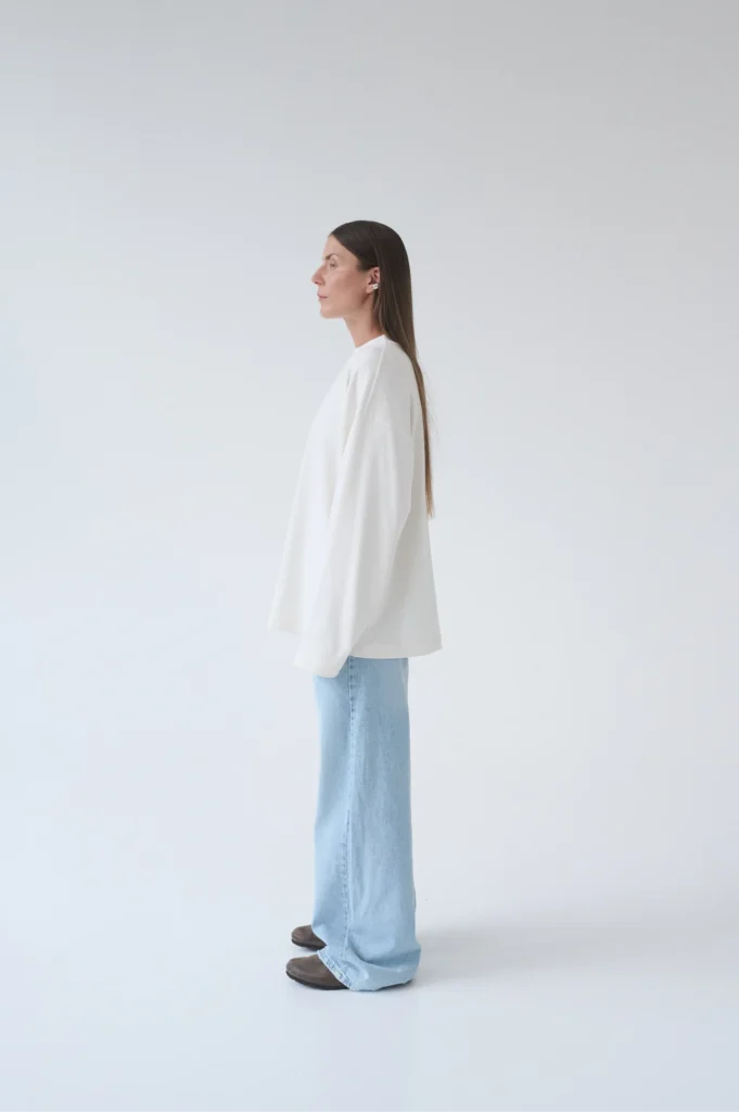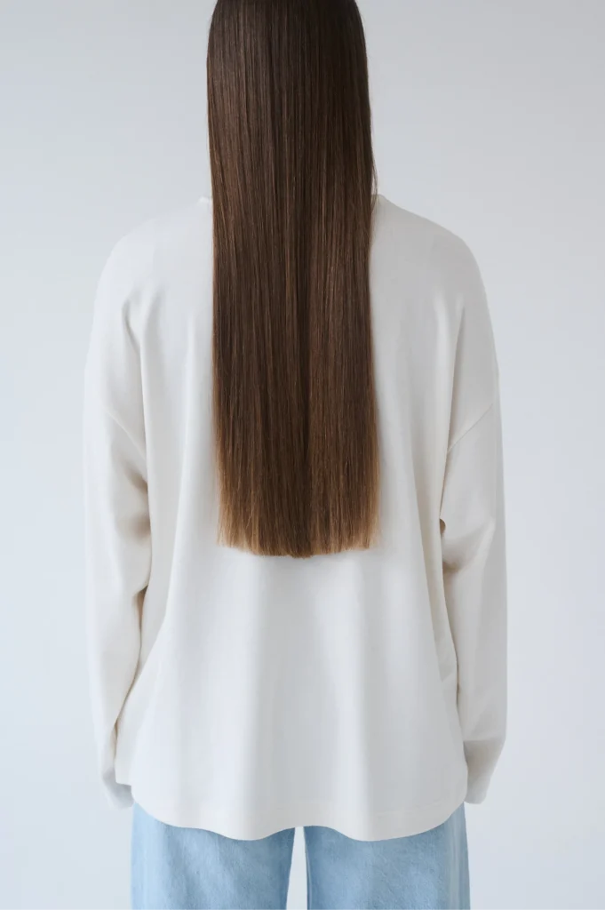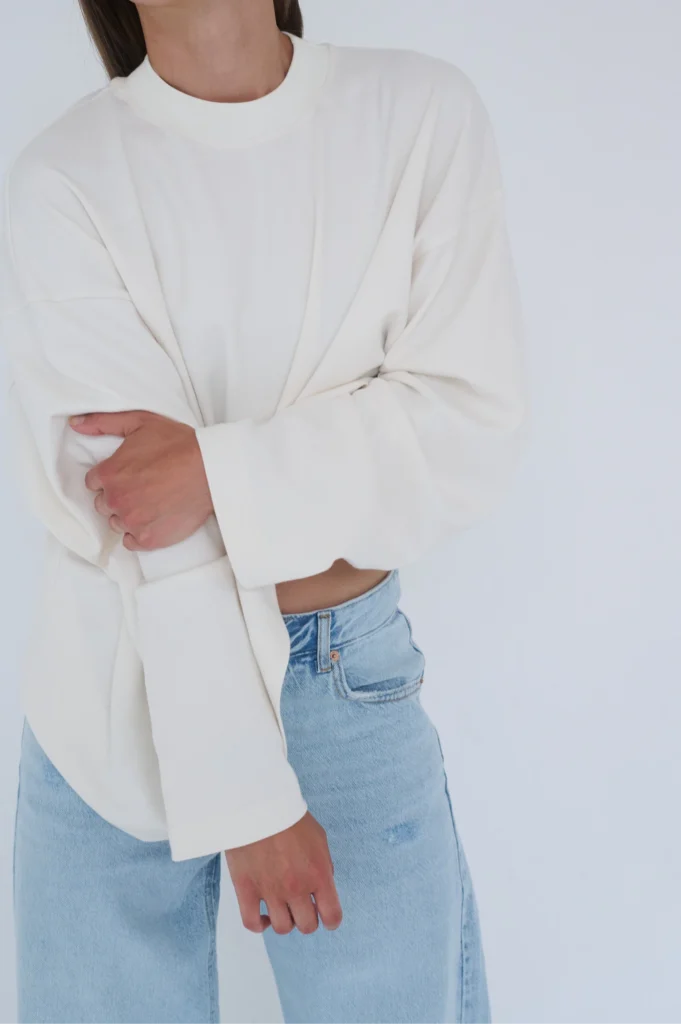 Ivory spalvos, padidinto dydžio marškinėliai ilgomis rankovėmis