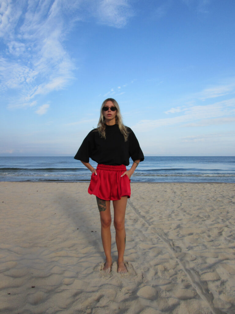 RED SATIN SHORTS